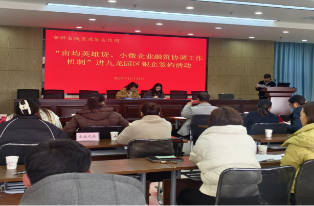 11月28日上午,市工业和信息化局举办减负政策宣传暨“亩均英雄贷、小微企业融资协调工作机制”进九龙园区推广活动。市减负联席会议成员有关单位负责同志,屯溪区有关单位、金融机构负责同志,工业重点企业代表,共50余人参加会议。
