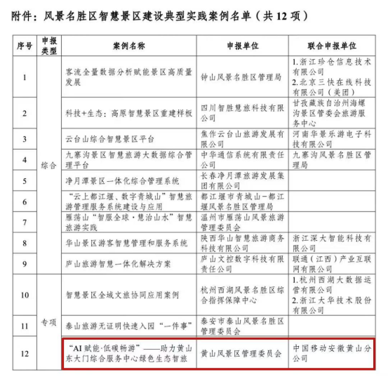 近日,中国风景名胜区协会公布风景名胜区智慧景区建设典型实践案例名单,由黄山移动提供全流程技术服务的《“AI赋能,低碳畅游”——助力黄山东大门综合服务中心绿色生态智旅》”专项案例成功入选,是本次评选活动中全省唯一入选的实践案例,成为全国智慧景区建设的示范样板。