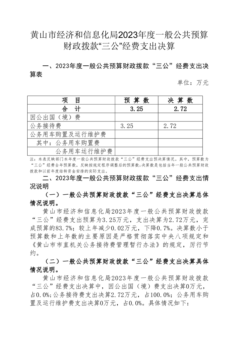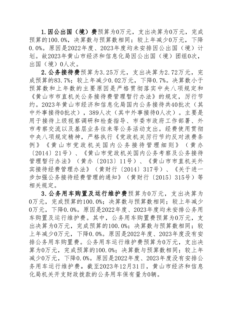 黄山市经济和信息化局2023年度一般公共预算财政拨款“三公”经费支出决算.pdf