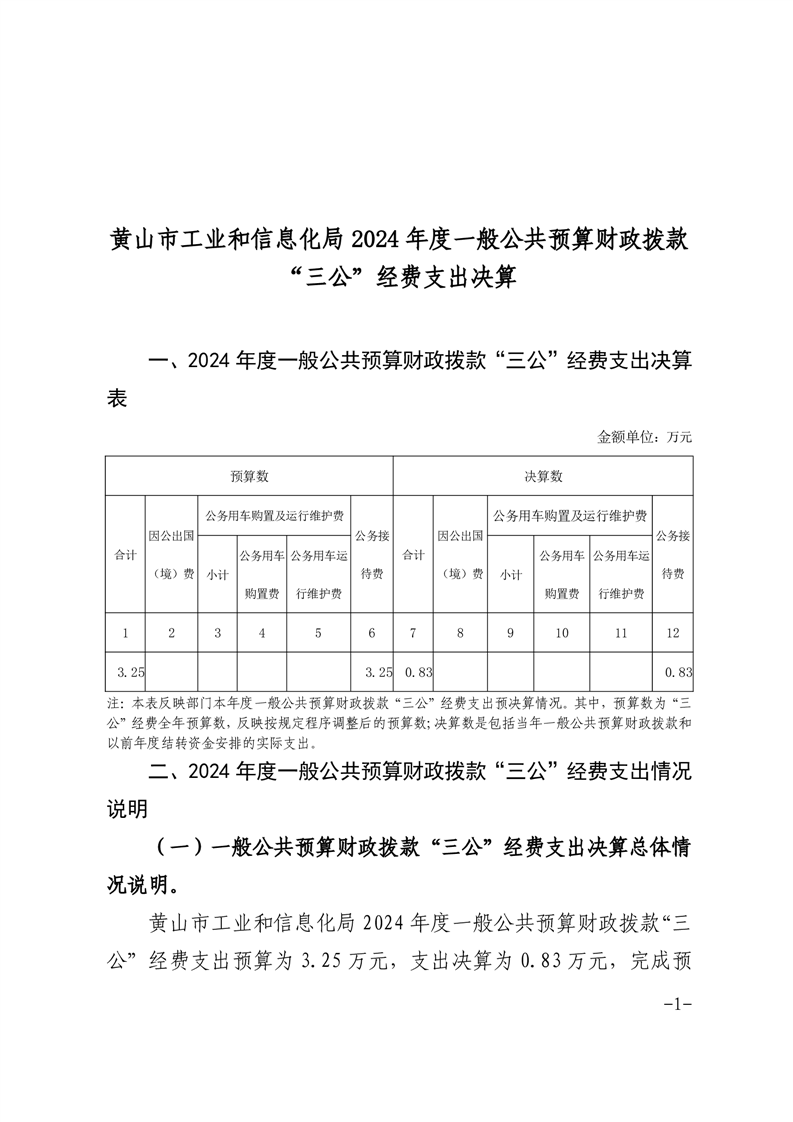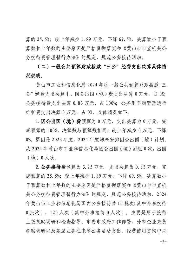 黄山市工业和信息化局2024年度一般公共预算财政拨款“三公”经费支出决算.pdf